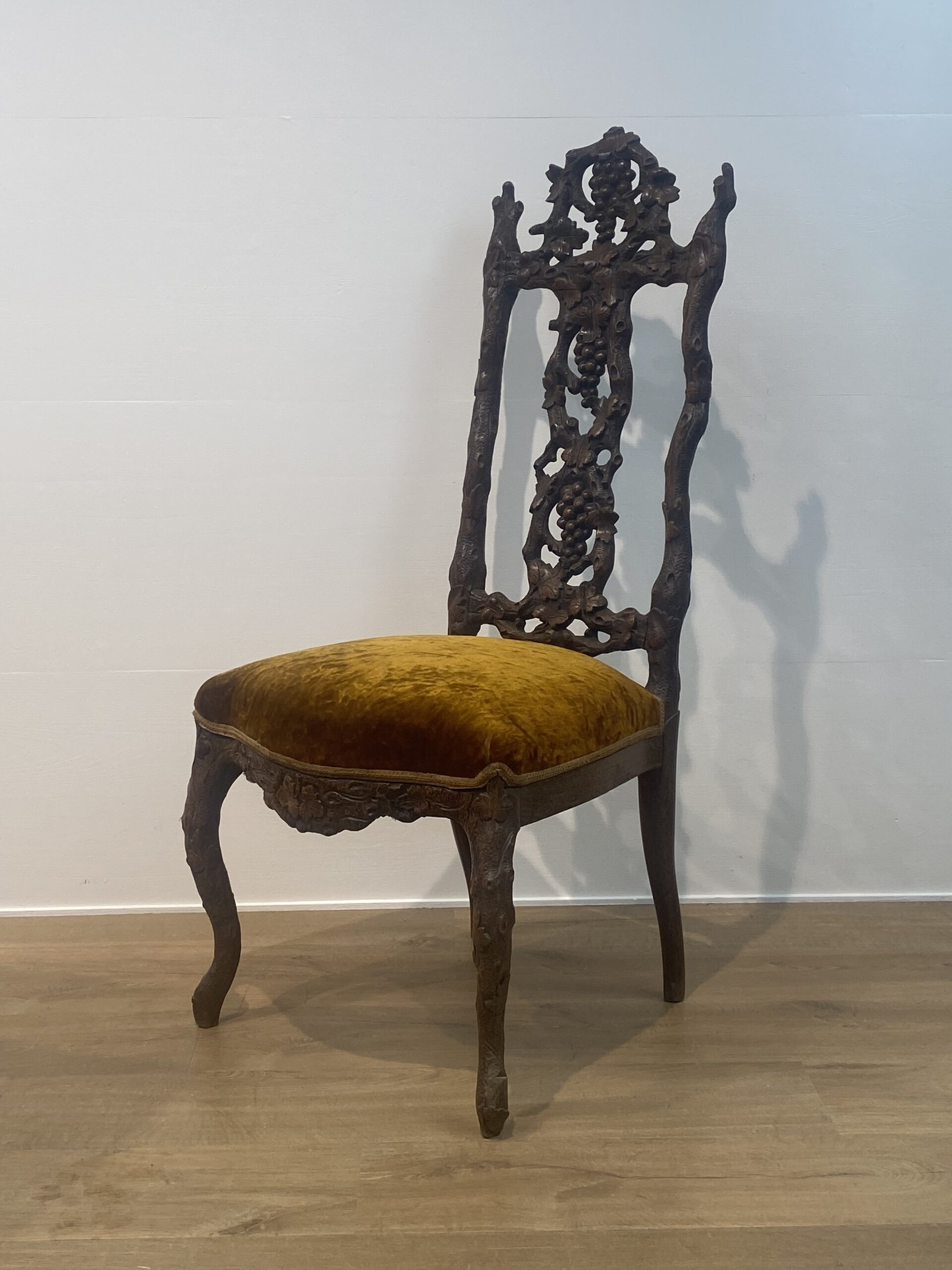 Antique French Chair decorated with hand carved Grapes Leaves,