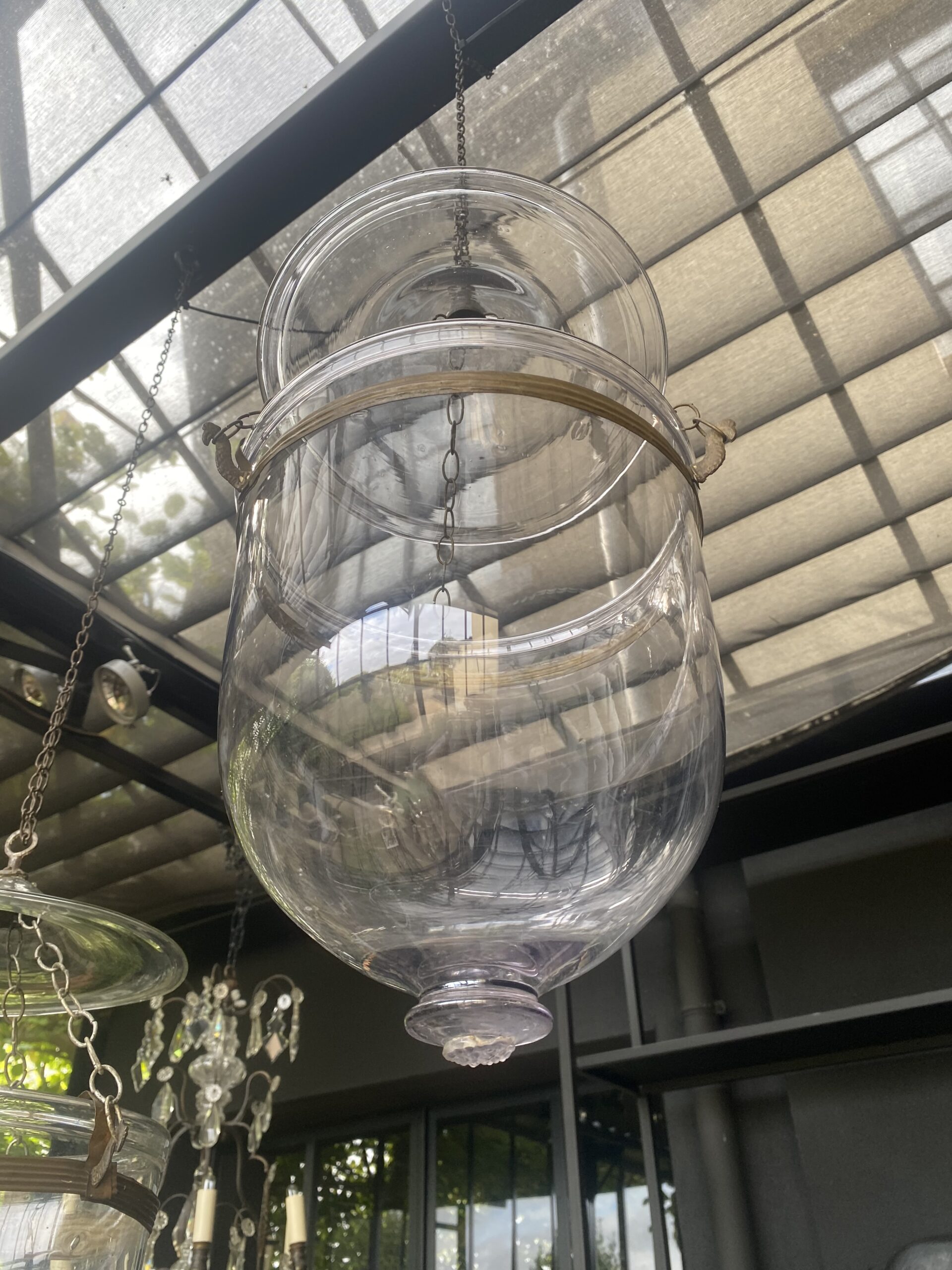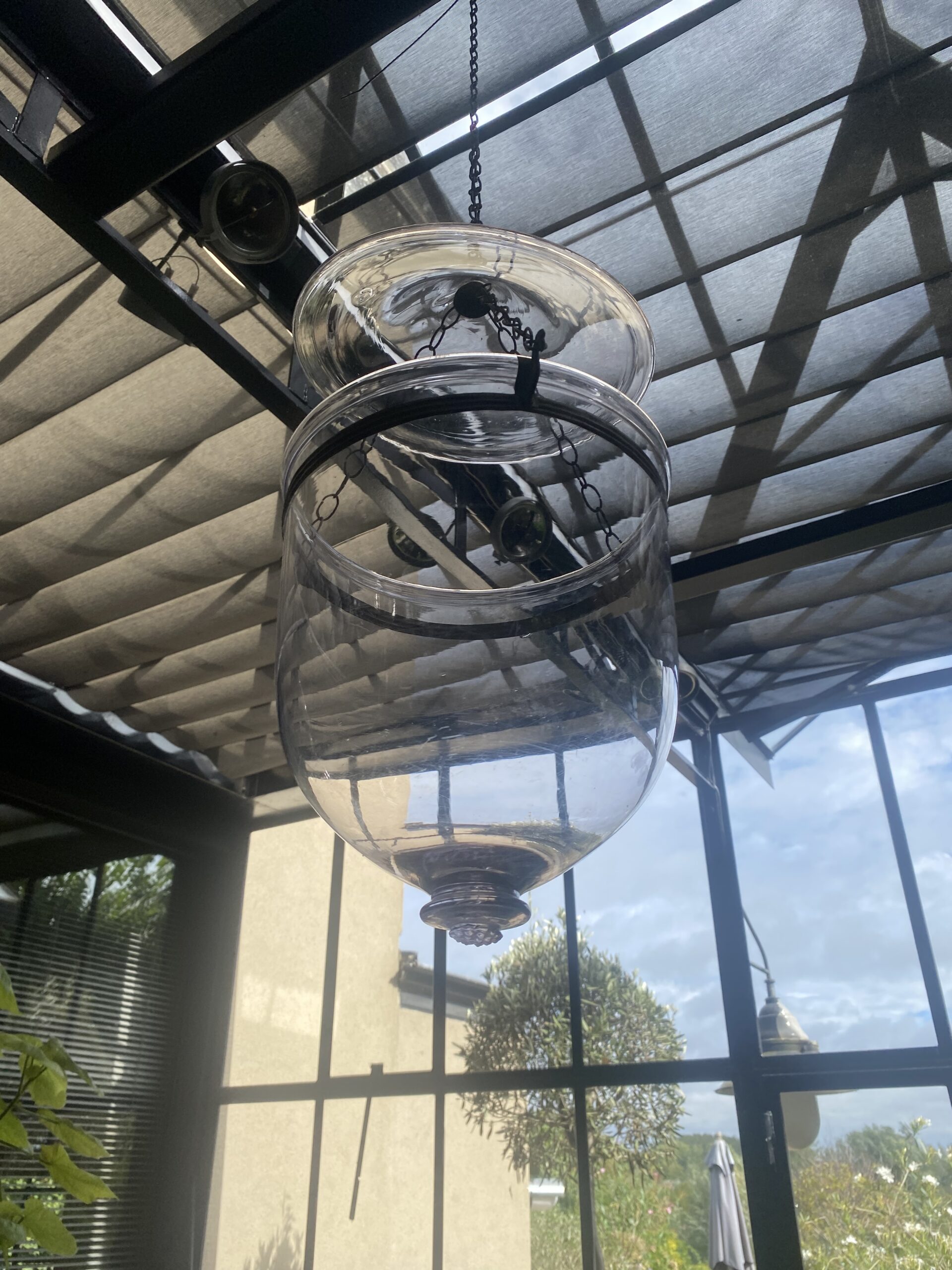 French antique pair of  Hanging Lamps in old glass,
